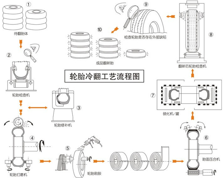 6、把輪胎放進硫化罐通過高溫硫化使輪胎重新堅韌、結(jié)實耐用?! ?br />7、輪胎翻新工藝過程中的_后一個步驟是_終檢驗。以_翻新后的輪胎能重新使用,從而實現(xiàn)廢舊輪胎再利用。